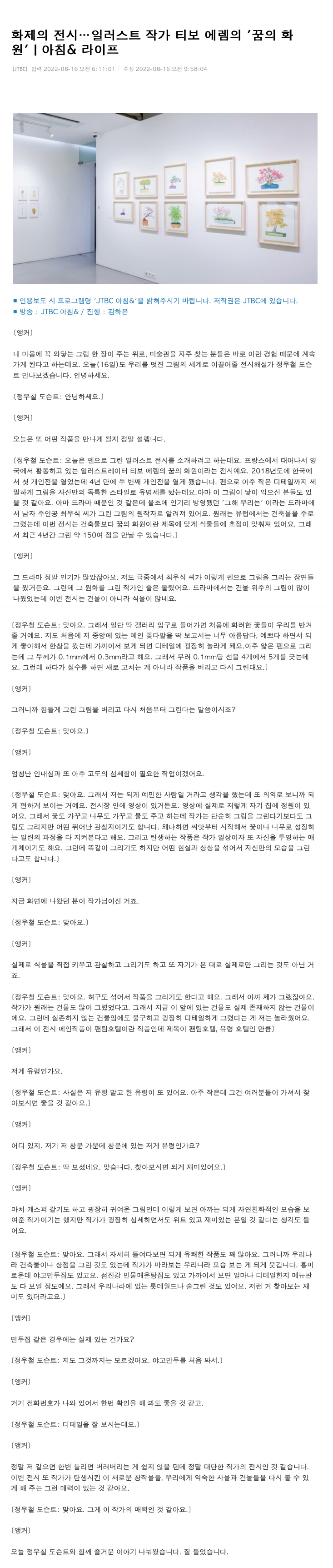 JTBC 아침& 2022.08 '일러스트 작가 티보 에렘의 '꿈의 화원'