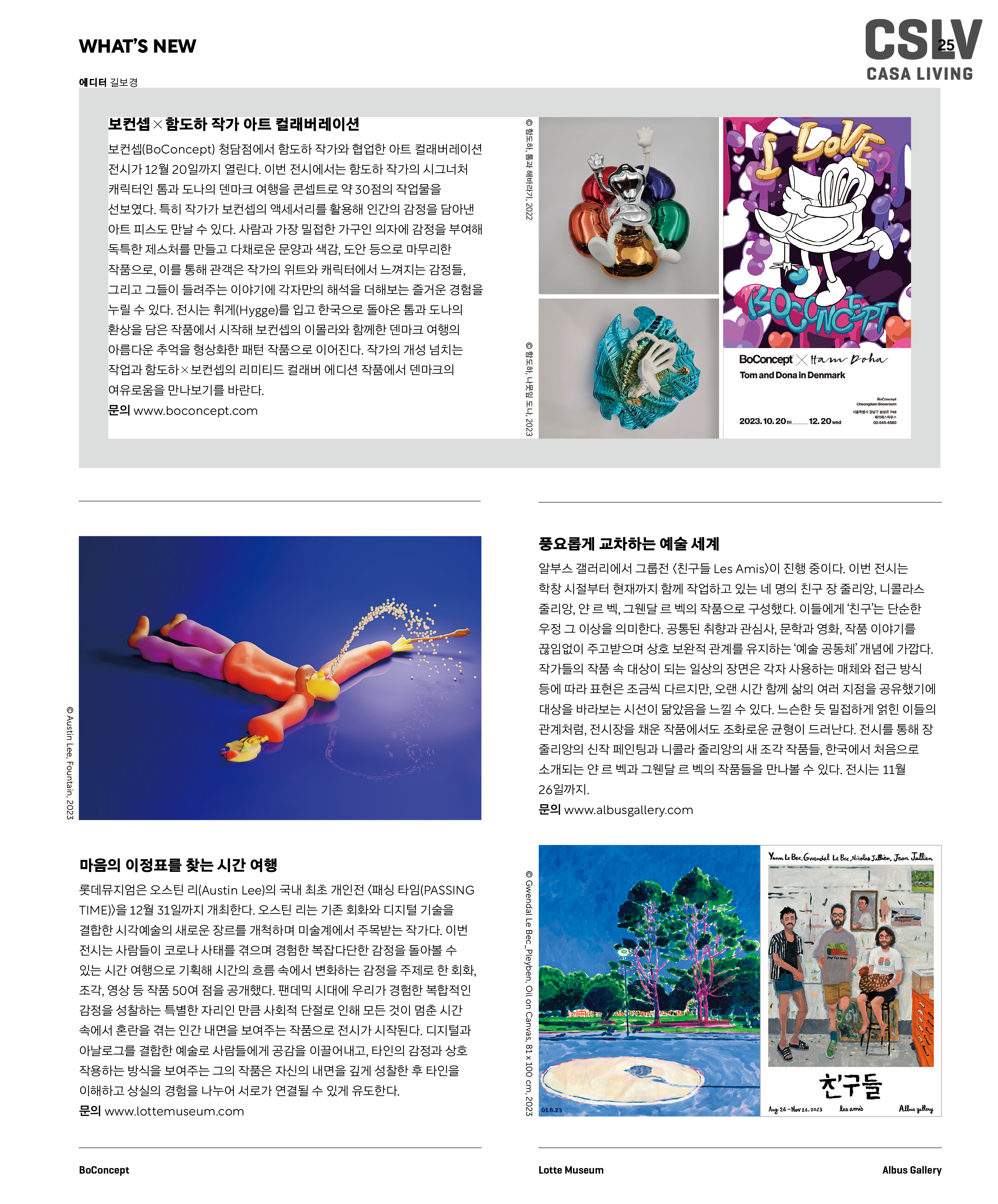CSLV까사리빙_2023.10 'WHAT'S NEW: 풍요롭게 교차하는 예술 세계'