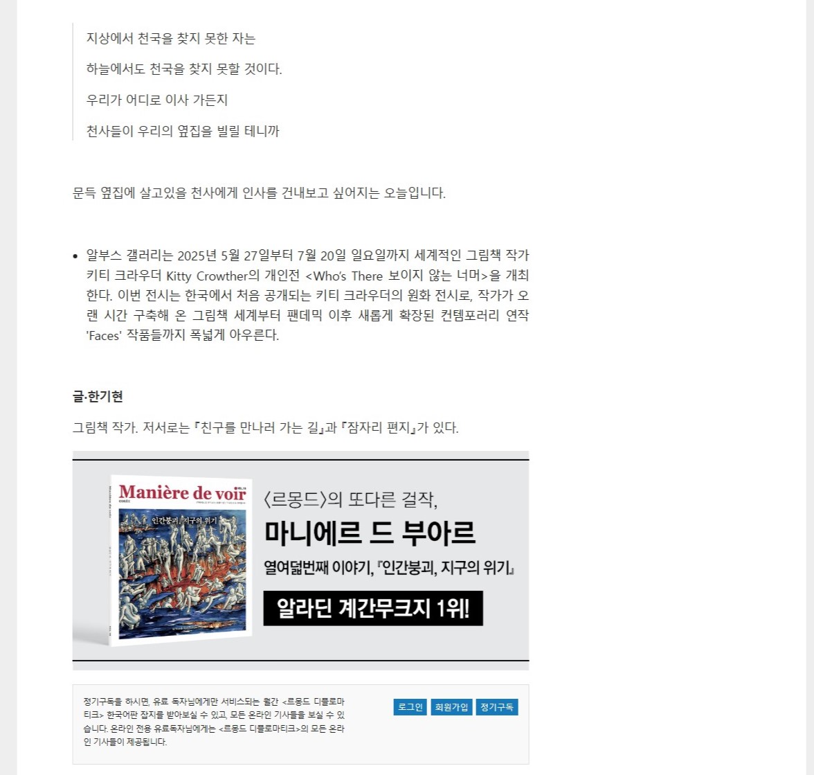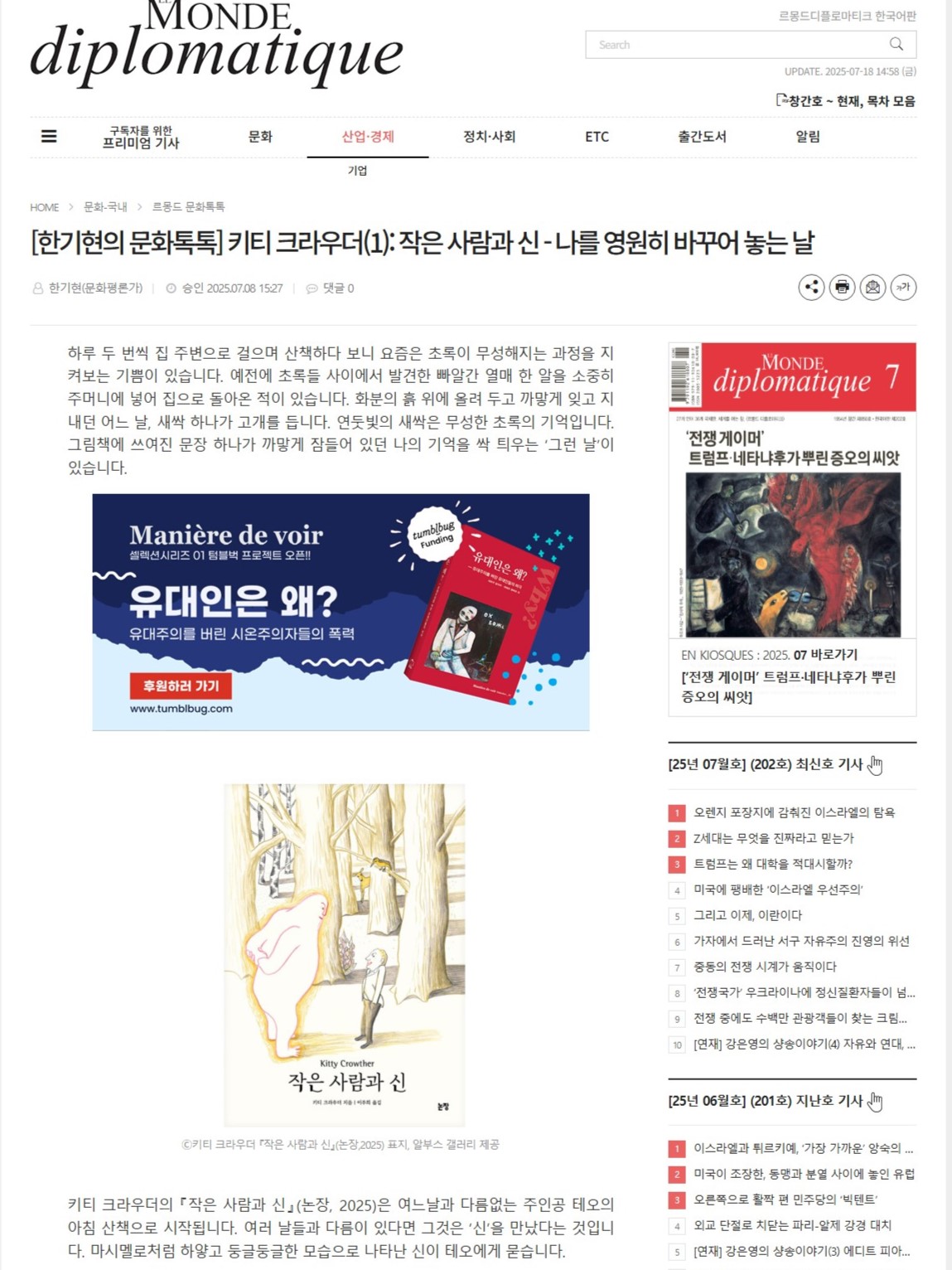 르몽드 디플로마티크_25.07.08 '키티 크라우더: 작은 사람과 신 - 나를 영원히 바꾸어 놓는 날'