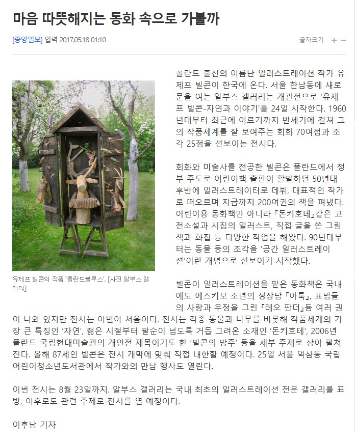 중앙일보 2017.05 '유제프 빌콘_마음 따뜻해지는 동화 속으로 가볼까'